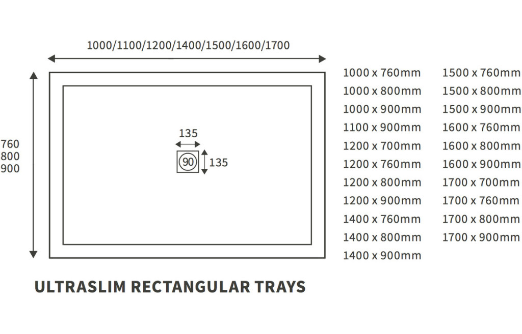 River 25mm Ultra-Slim 1400mm X 900mm Rectangular Tray & Waste