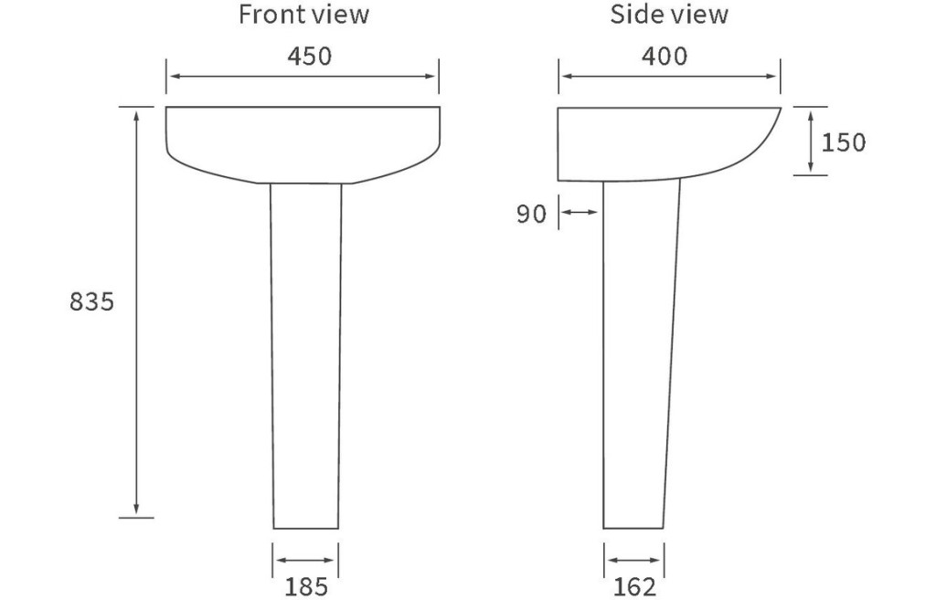 - Dimensions: Height 835 x Width 450 x Depth 400mm