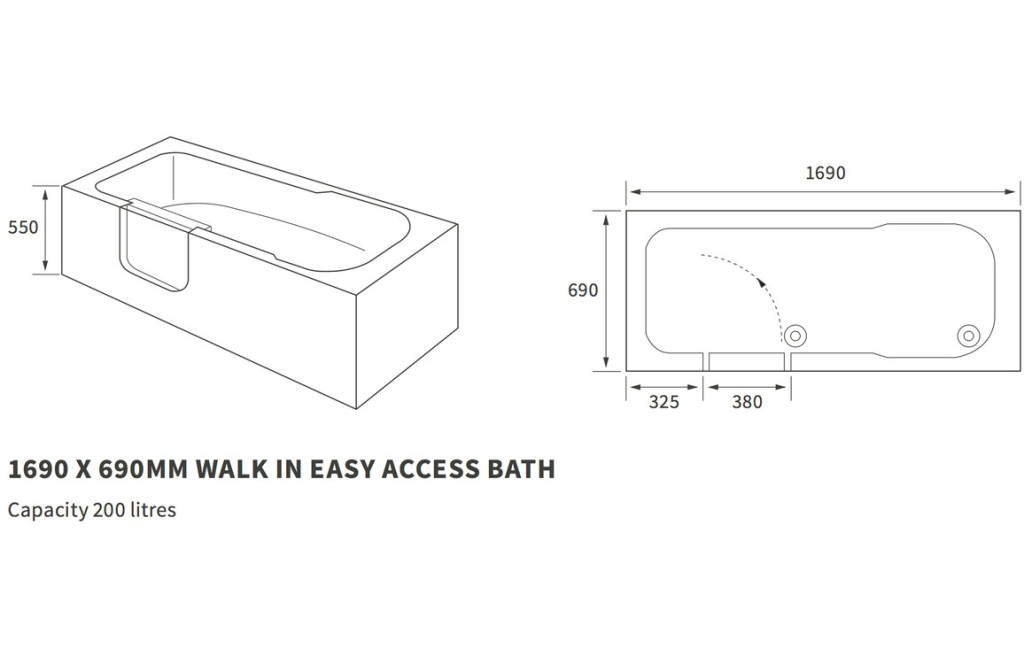 Daintree 1690X690X550mm 0 Tapholes Bath - Right Handed