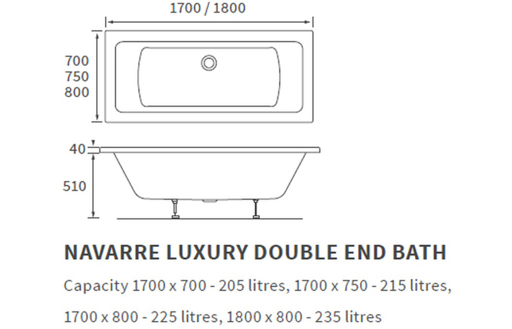 - Double Ended, Modern Straight Bath