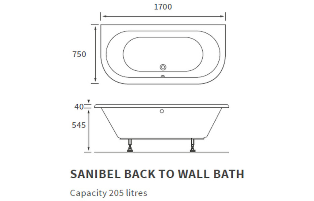 - Double Ended, Modern Back To Wall Bath