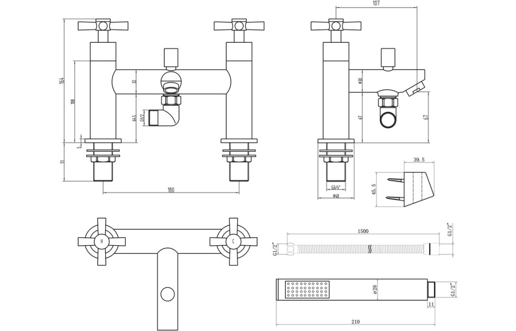 - High Pressure Deck Mounted Silver Bath Shower Mixer