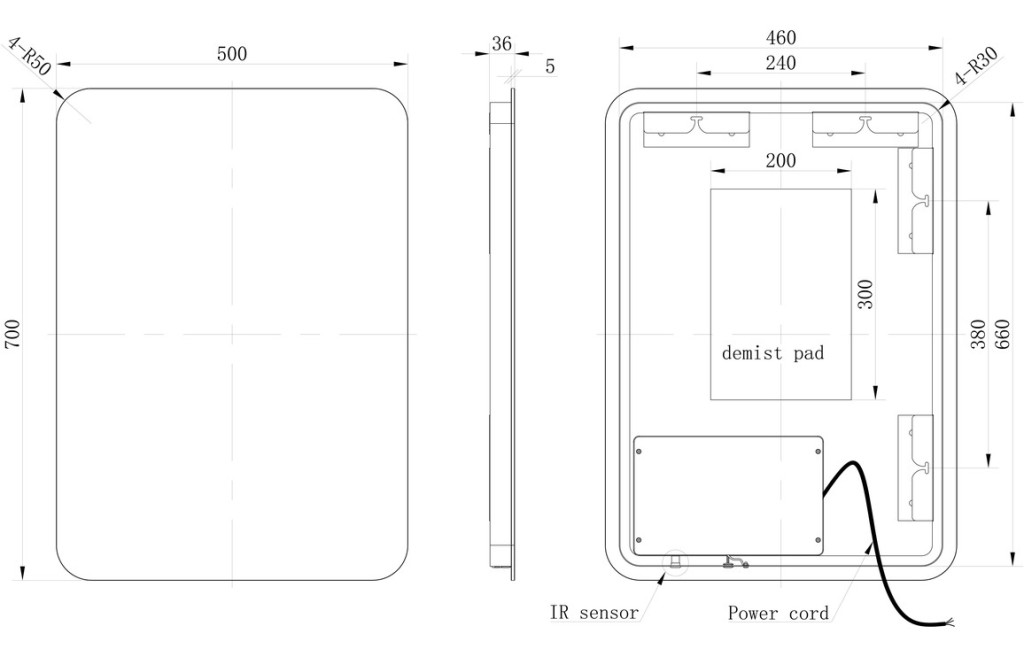 - Dimensions: Height 700 x Width 500 x Depth 35mm