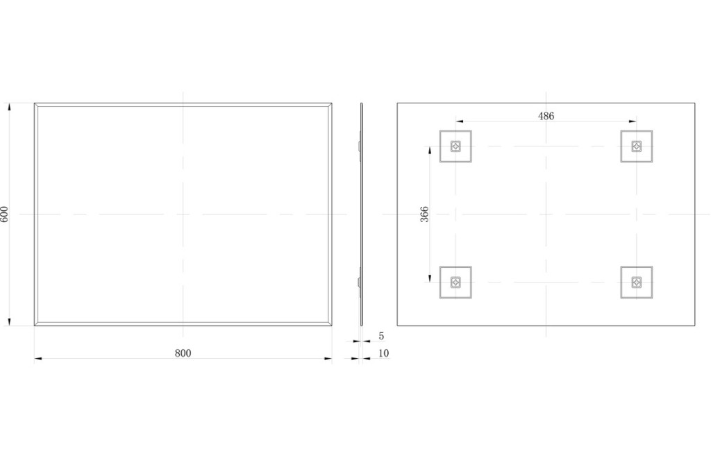 - Dimensions: Height 800 x Width 600 x Depth 10mm