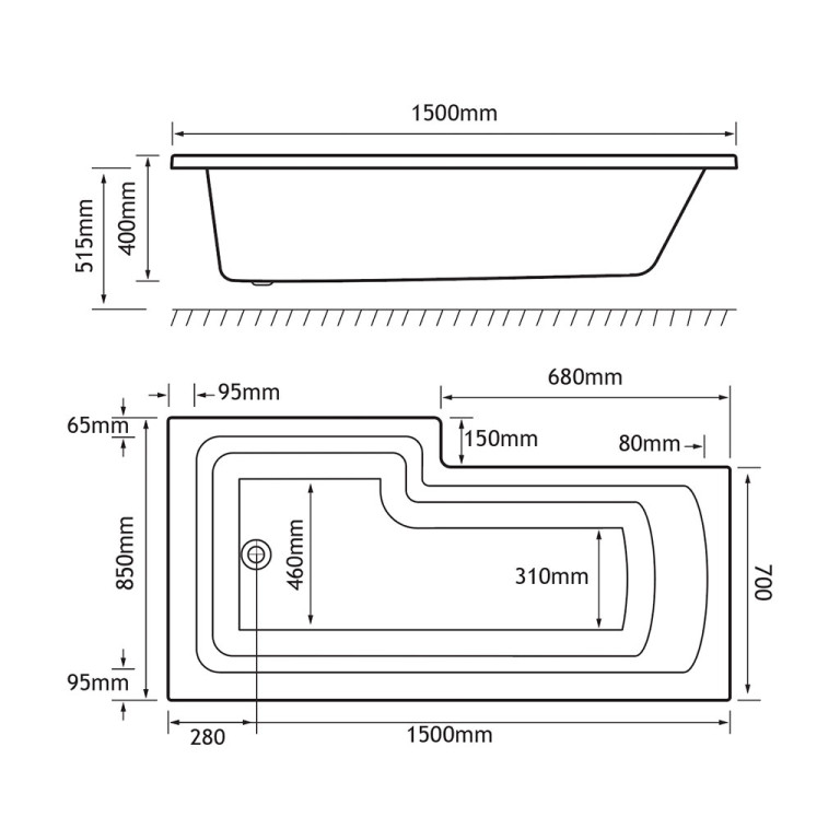 - Length: 1500mm, Width: 700mm, Internal depth: 400mm, Height: 515mm