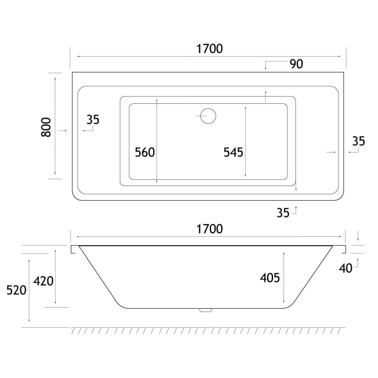 - Length: 1700mm, Width: 800mm, Internal depth: 440mm, Height: 560mm