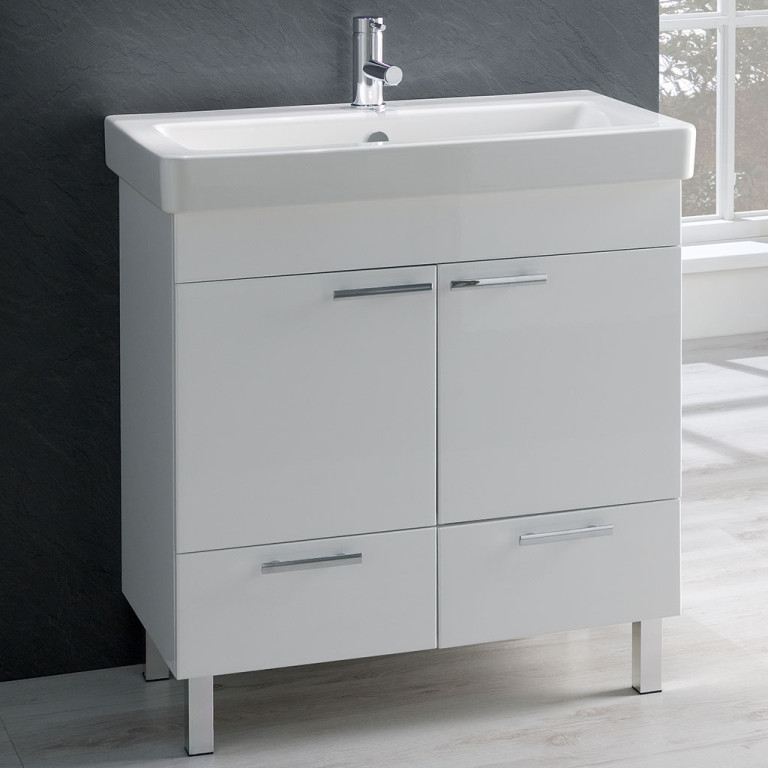 A modern design of a traditional concept with soft close hinges on doors only, adjustable feet and stone resin cast top which is repairable if chipped.