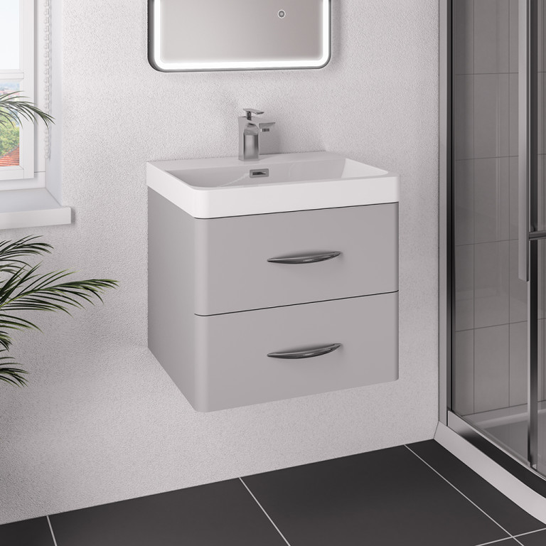 Our newly designed Cavone cloakroom bathroom furniture features a luxurious curved basin that flows perfectly with the curved lines of the drawers of the vanity unit. Features soft close doors, interchangeable chrome or black handles, built in overflow. Unit only, basin sold separately.