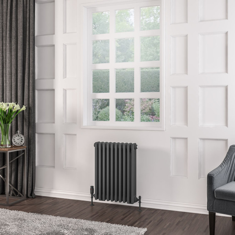 A traditional radiator which will give a Victorian touch of authenticity to any room but will also create an elegant look to a contemporary interior. This radiator boasts high outputs to ensure the whole room is warm. Comes with the options of traditional feet and available in gloss white, matt anthracite, bronze effect of chrome effect finishes.