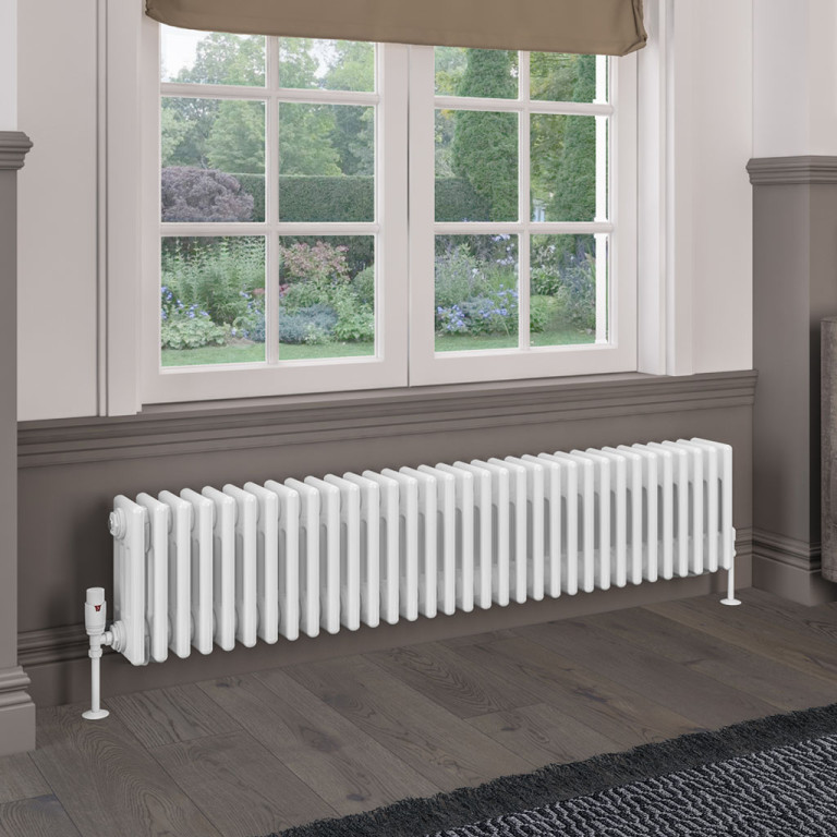 A traditional radiator which will give a Victorian touch of authenticity to any room but will also create an elegant look to a contemporary interior. This radiator boasts high outputs to ensure the whole room is warm. Comes with the options of traditional feet and available in gloss white and matt anthracite finishes.
