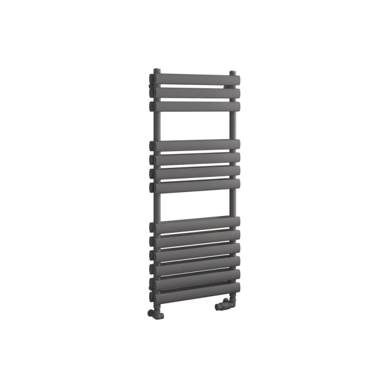 Double construction horizontal profiles in elliptical shape of this towel rail will warm your towels and also your bathroom. Available in 3 colour finishes, matt white, matt anthracite and matt black.