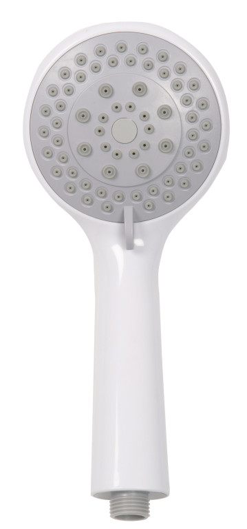Boasting a fresh white finish, this sleek accessory is sure to suit any décor.- Five function handset with rub clean nozzles