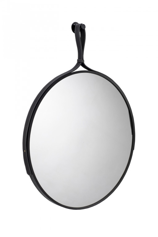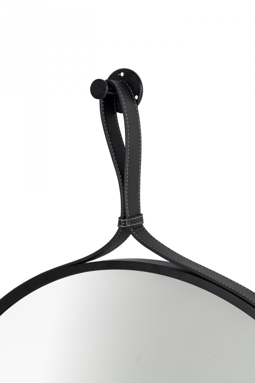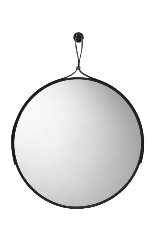The statement mirror with decorative leather effect strap creates a stylish focal point for any room in the house.- Statement round mirror with matt black aluminium frame