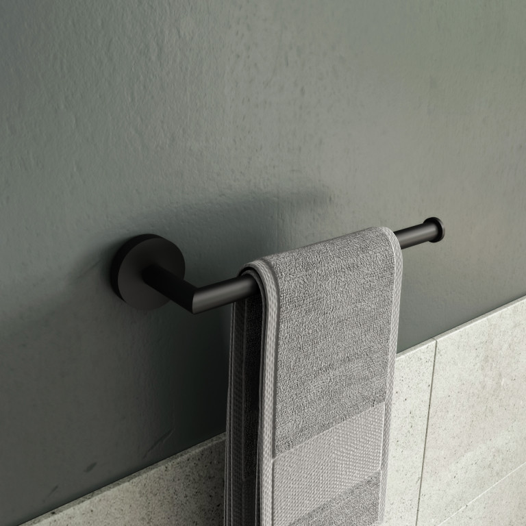 Instantly turn your bathroom into a contemporary space that would fit right into any interior’s magazine with this on-trend, matte black towel bar.