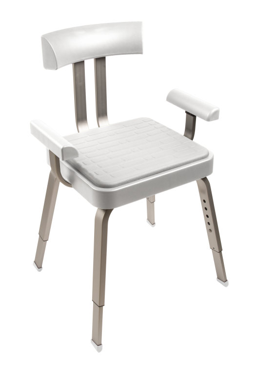 Boasting a curved padded backrest and soft cushioned seat this seat offers a touch of luxury ideal for optimising comfort and assistance. Armrests, slip-resistant feet and height adjustable legs enhance ease of use, whilst the lightweight design makes it easy to situate.