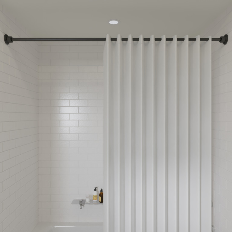 - Matt black powder coated aluminium showercurtain rod