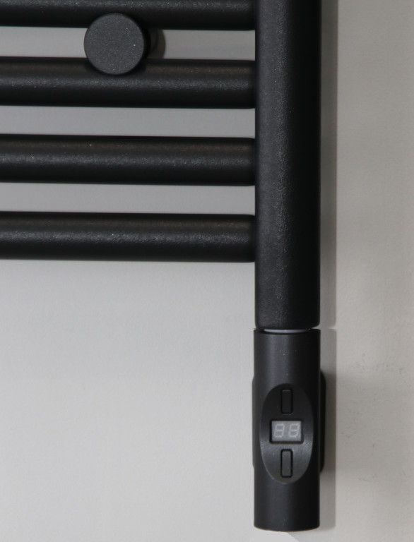The Hugo2 temperature regulating element in colour Anthracite is for use with Hugo2 heated towel rail. The thermostatic element can be hard-wired in and casing goes to the wall to conceal wiring. A digital screen allows you to set the temperature, ranging from 10-65 degrees celsius. Turbo mode allows you to set the towel rail to maximum heating temperature for 1-3 hours, and a timer mode sets the desired number of hours you wish for the heating to be on for (1-9 hours). T-piece is not included