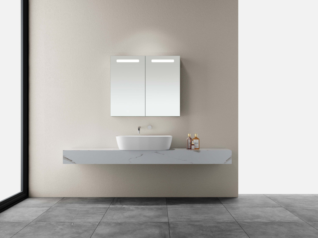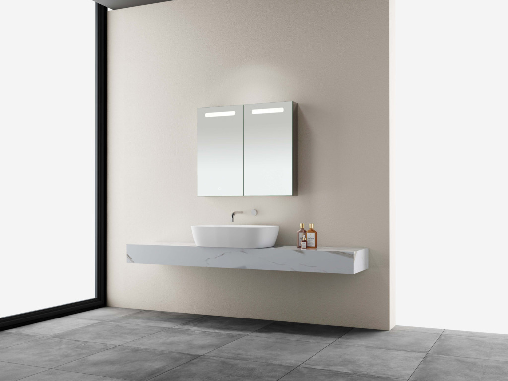 - Right-hand hinged door opening / Soft-close hinges / 3-tone ambient lighting / Door mirrored on the reverse.
