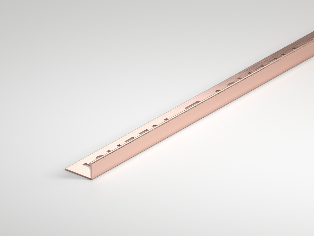 Straight metal profile to give a contemporary finish. Tiles sit under the lip of the trim and neatly abut the trim edge