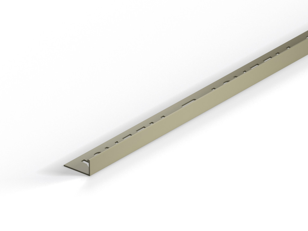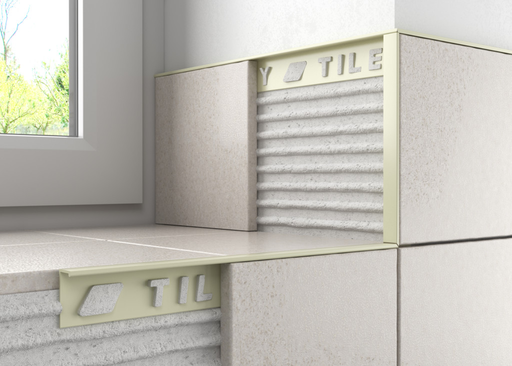 Straight plastic profile to give a contemporary finish. Tiles sit under the lip of the trim and neatly abut the trim edge