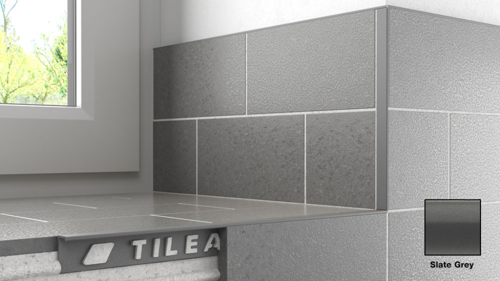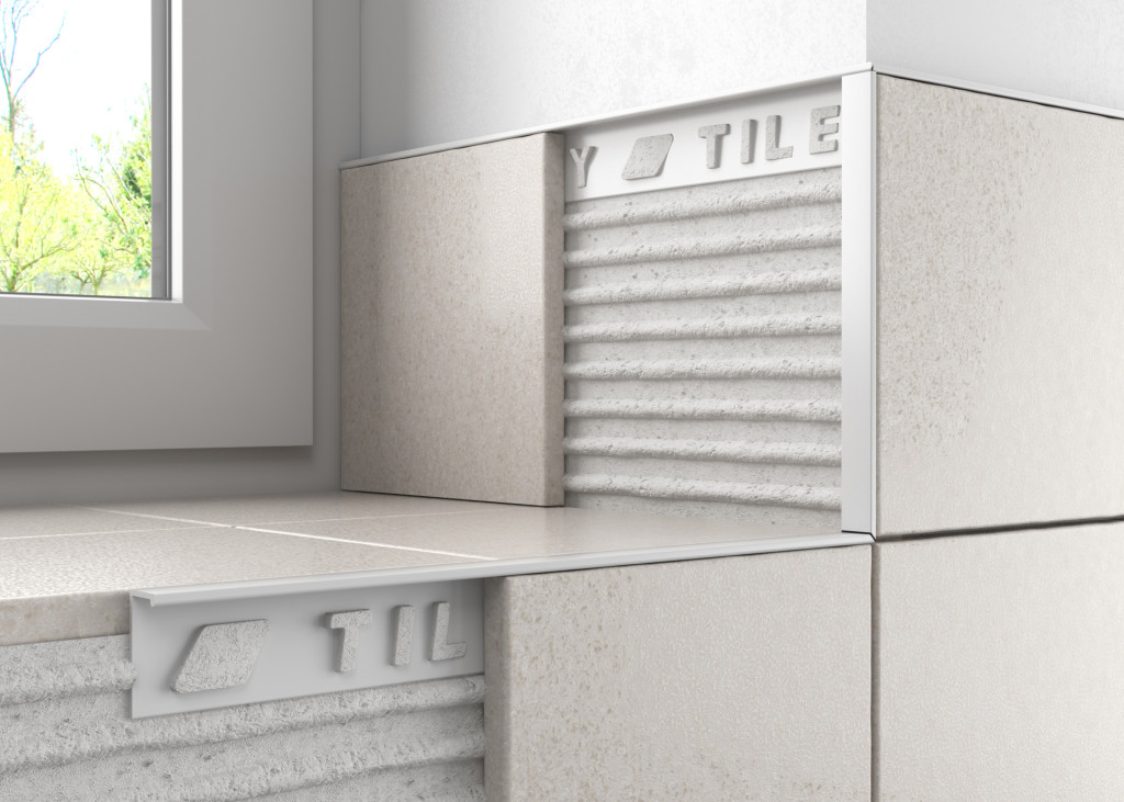 Straight plastic profile to give a contemporary finish. Tiles sit under the lip of the trim and neatly abut the trim edge- Brand