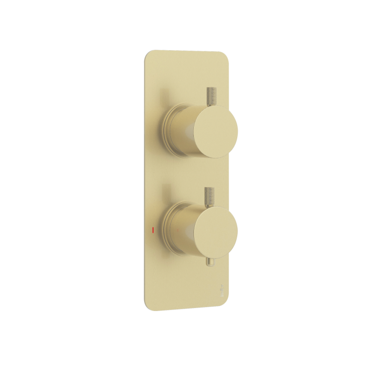 Ravine Brushed Brass Two Handle, Two Outlet, Concealed Thermostatic Shower
