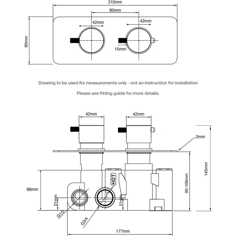 Ravine Matt Black Two Handle, Two Outlet, Concealed Thermostatic Shower