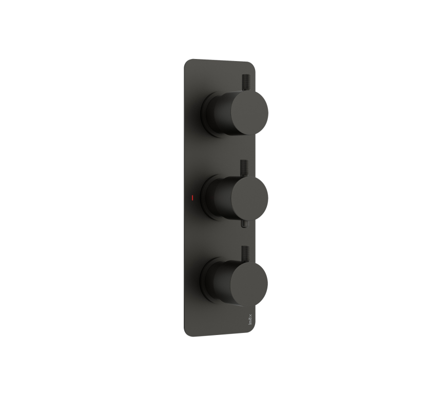 Ravine Matt Black Three Handle, Two Outlet, Concealed Thermostatic Shower
