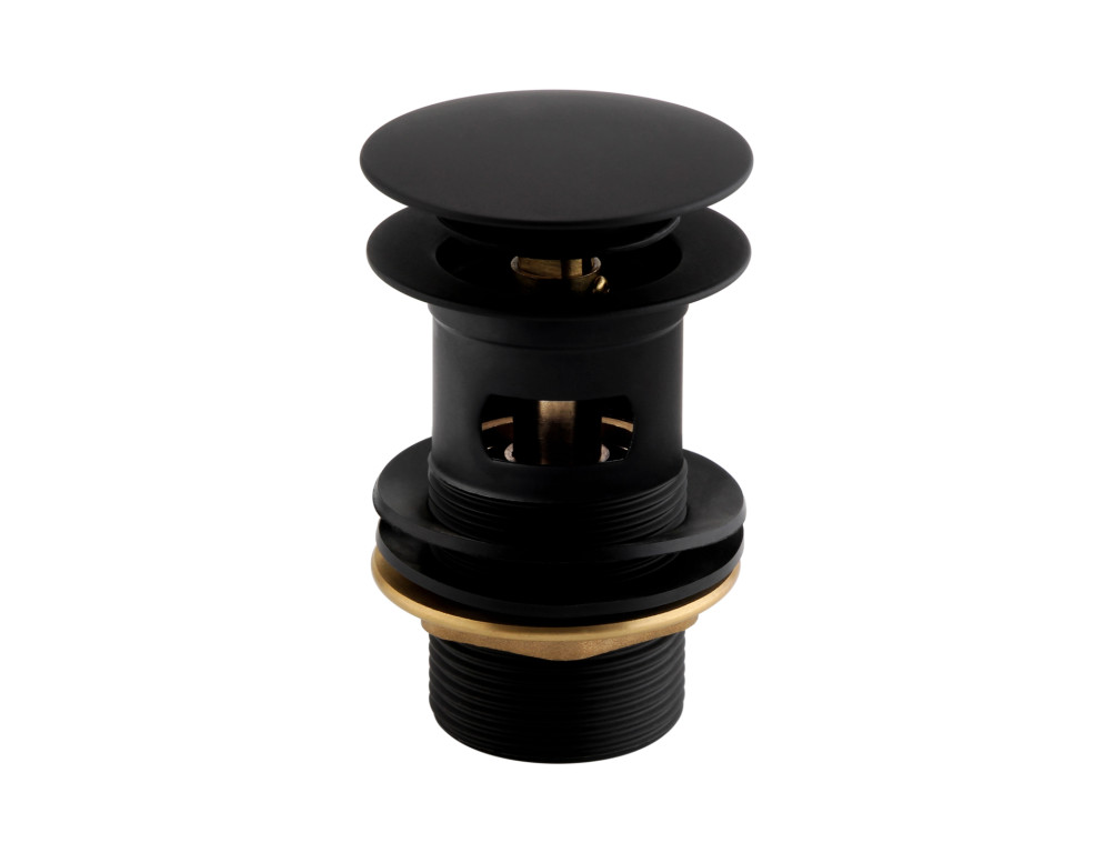 Basin Solid Brass clicker Matt Black waste slotted with Brass backnut