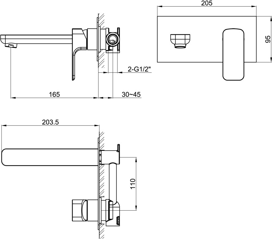 Flite Single Handle Wall Mounted Basin Mixer Inc Clicker Waste