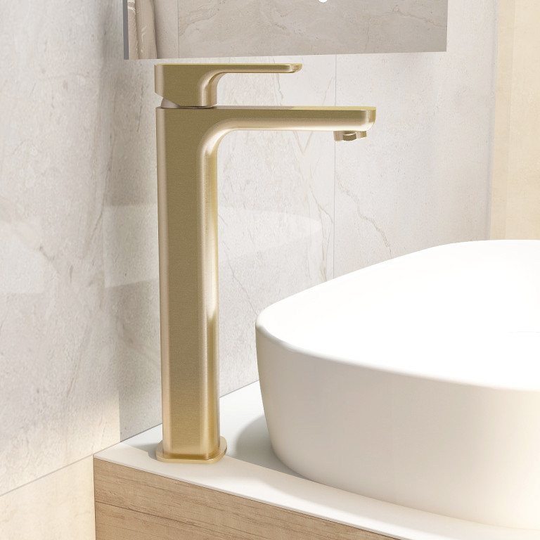 Flite tall basin mixer in Brushed Brass with universal clicker waste