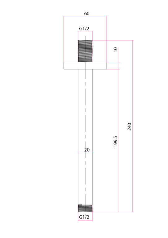 200mm Matt Black Round Ceiling Mounted Shower Arm