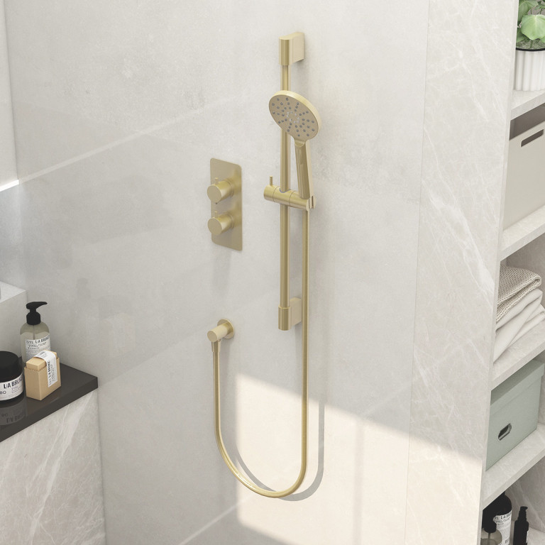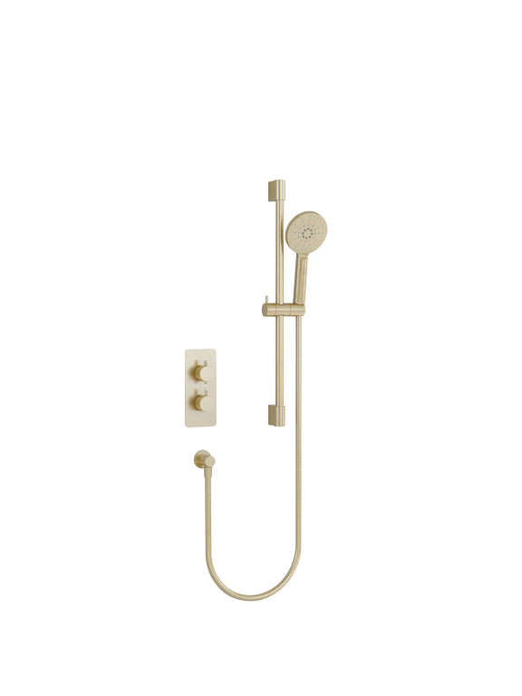 Ravine single outlet concealed thermostatic valve with adjustable multifunction handset in Brushed Brass