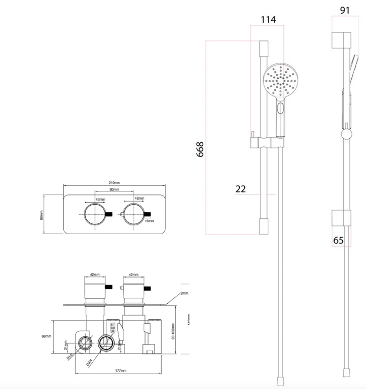 Ravine 2 Handle, Dual Diverter Concealed Thermostatic Valve with 200mm Fixed Head,...