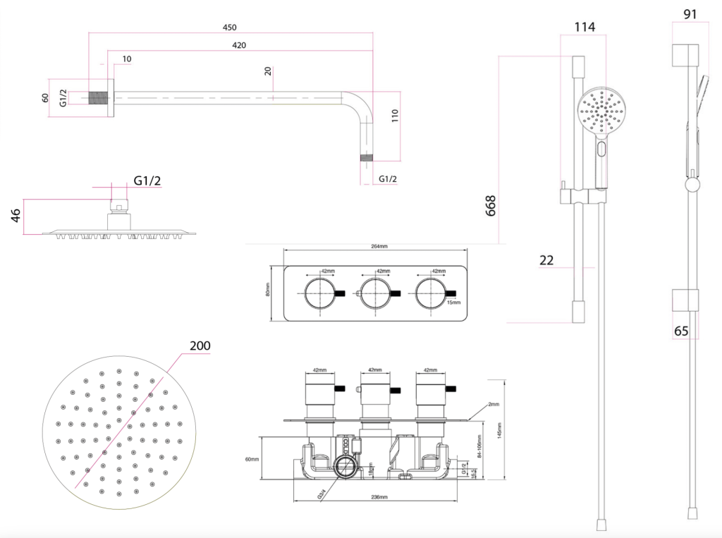 Ravine 3 Handle, Dual Diverter Concealed Thermostatic Valve with Adjustable and 200mm...