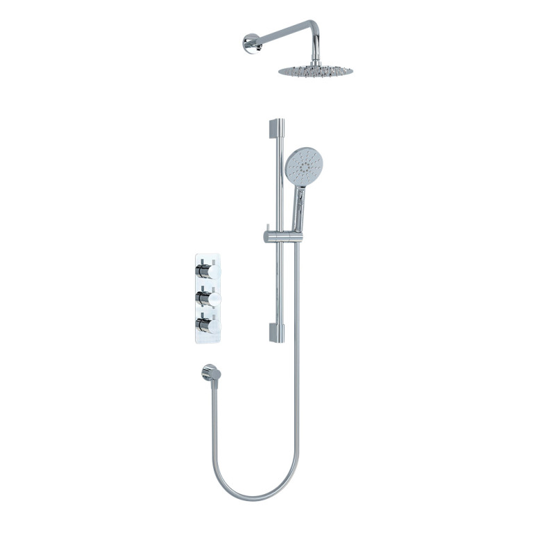 Ravine 3 handle, dual diverter concealed thermostatic valve with adjustable and 200mm fixed heads in Chrome