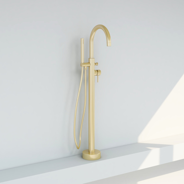 Ravine floor standing bath shower mixer in Brushed Brass with Hose and handset
