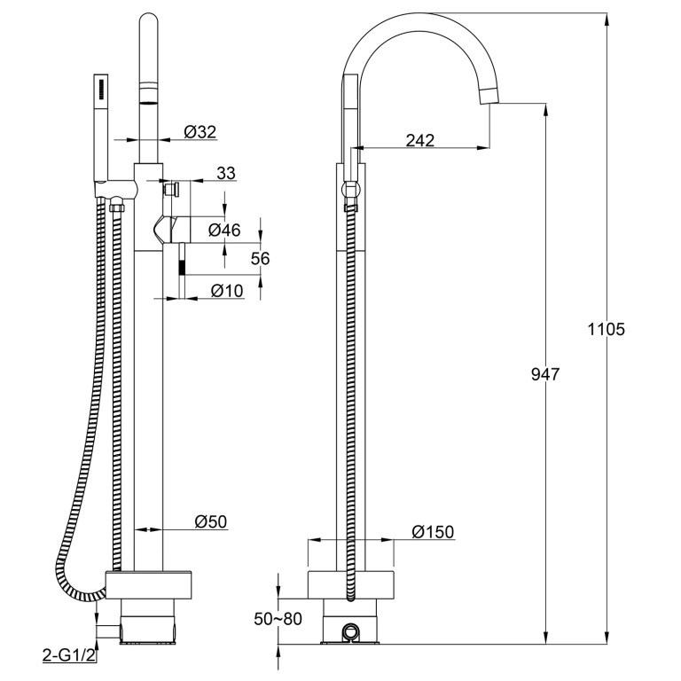 Ravine Floor Standing Bath Shower Mixer in Chrome with Hose and Handset
