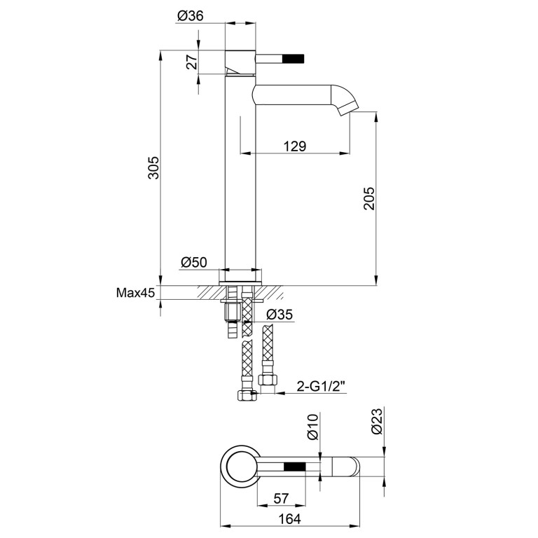 Ravine Tall Basin Mixer in Matt Black with Clicker Universal Waste