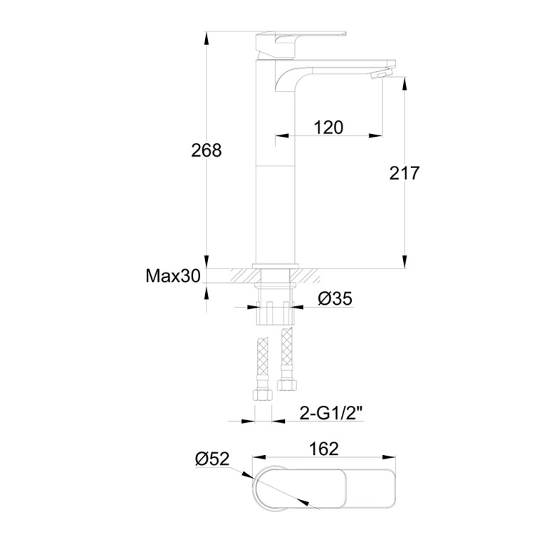 Suburb Tall basin mixer in Brushed Brass with universal waste