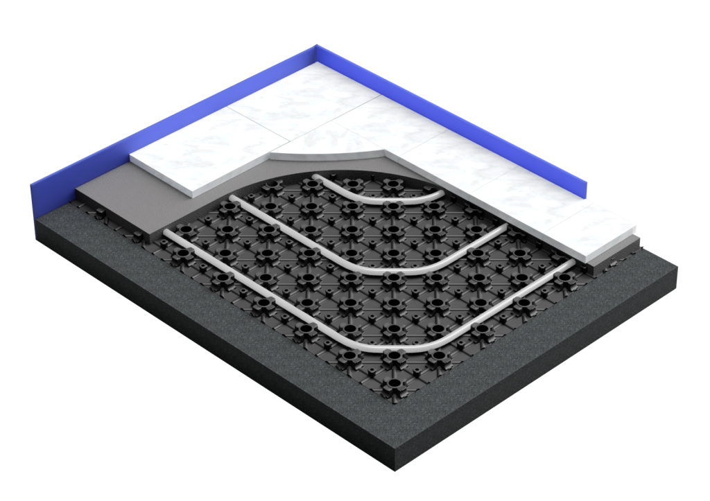 The VLo Nexxa-12 is a low profile wet underfloor heating system, designed for new-build and refurbishment projects where a low floor build-up is required. Allowing quick installation times, the Nexxa-12 is a modular system which bonds directly to a smoothed and primed subfloor. The Nexxa-12's castellated membrane allows the heating pipes to be fitted quickly and securely with the ability for an individualised heating layout. With fast response times and excellent heat output (70W/m2 for timber floors at 40°C water temperature), the VLo Nexxa-12 System utilises Warmup’s 12mm PE-RT pipe and is suitable for use with all floor finishes. It can be used with heat pumps and boiler-based systems and offers energy-efficient warmth for the end user.