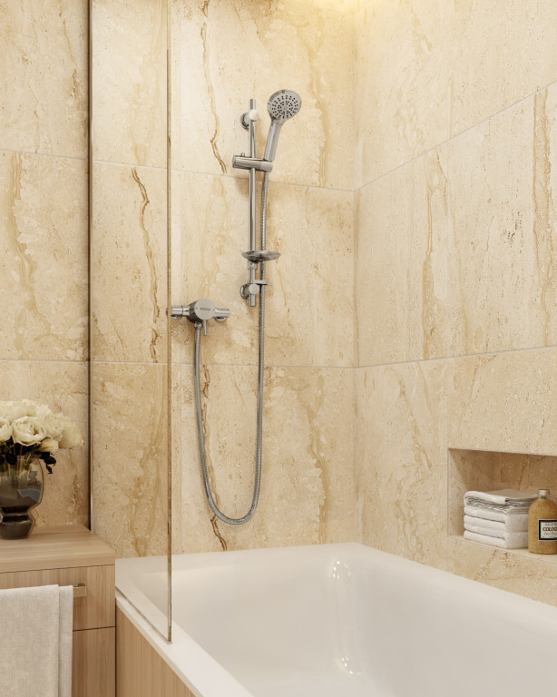 - Includes riser rail with adjustable fixing bracket, rub-clean anti-limescale handset and hose