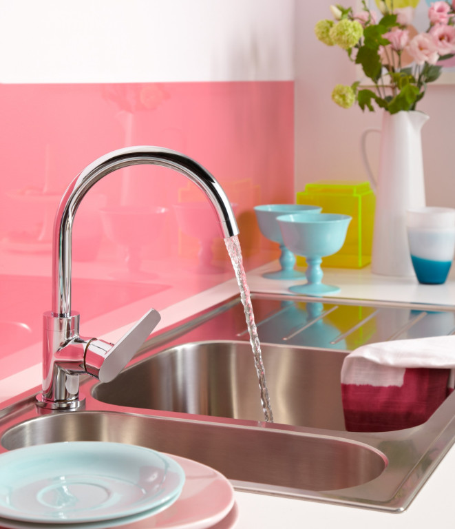 Raspberry combines a sleek, curved spout with a large, easy to use, flat handle.