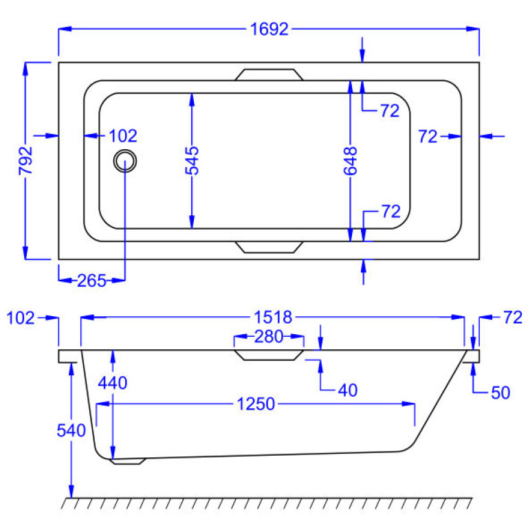 Carron Quantum Double Ended Bath 1700x800 Carronite™ Reinforced