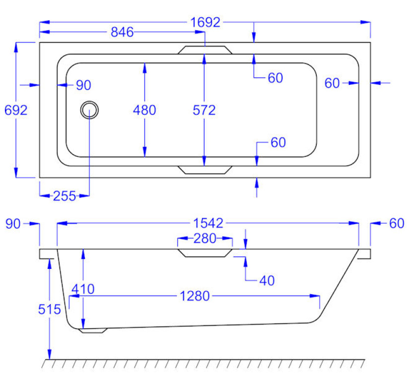 • Baths Standard Baths Carron Integra Single Ended Bath with Grips 1700x700