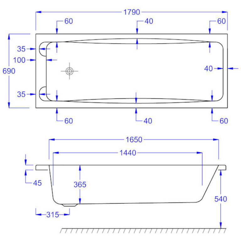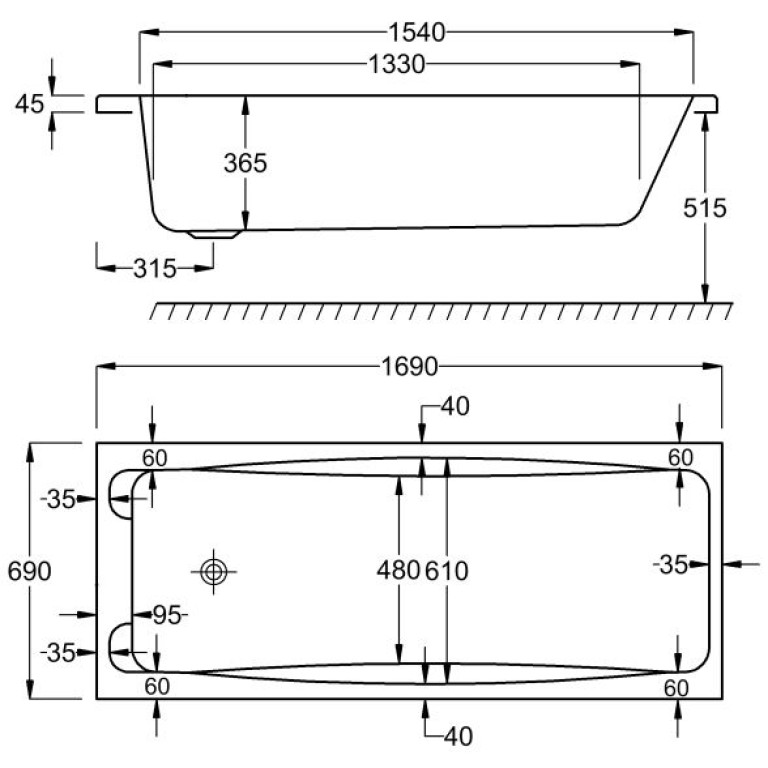 Carron Status Single Ended Bath 1700x800 RH Carronite™ Reinforced