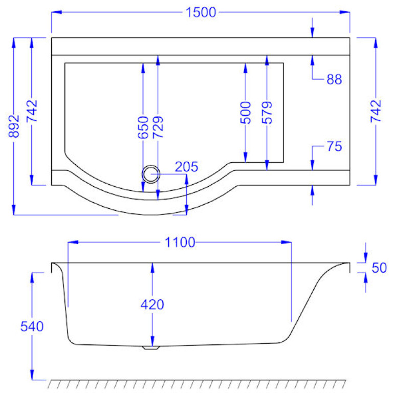 • Baths Shower Baths P Shaped Baths Carron Urban Showerbath 1500 RH
