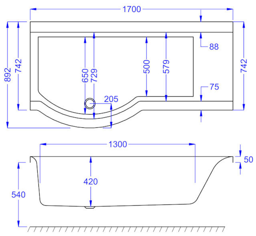Carron Urban Showerbath 1700 Lshape Bath Panel Carronite™ Reinforced