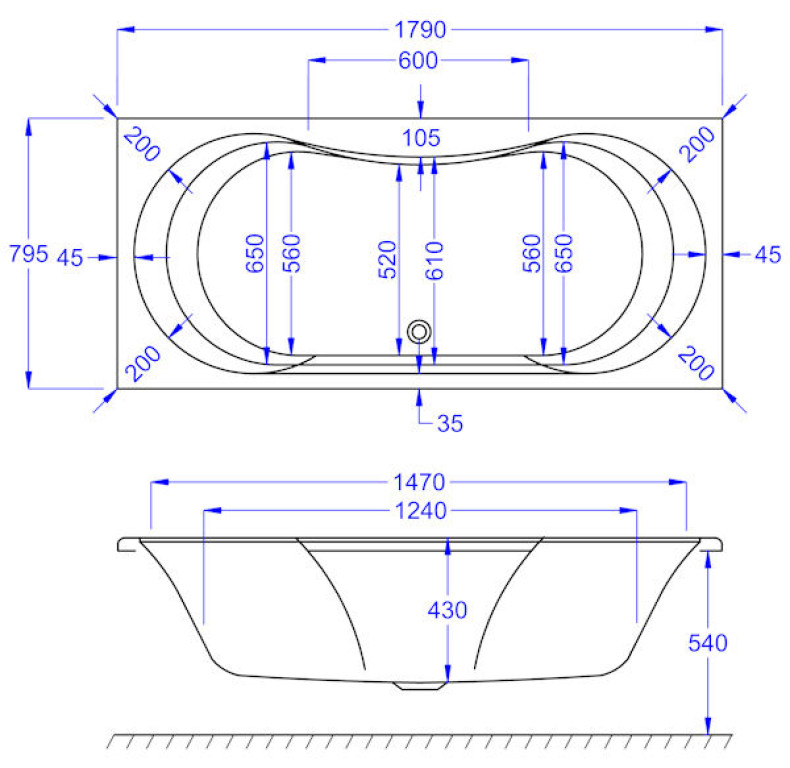 • Baths Standard Baths Carron Arc Single Ended Bath 1800x800 DE Carronite™ Reinforced