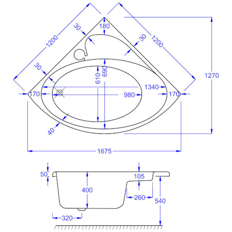 Carron Omege Offset Corner Bath RH Carronite™ Reinforced
